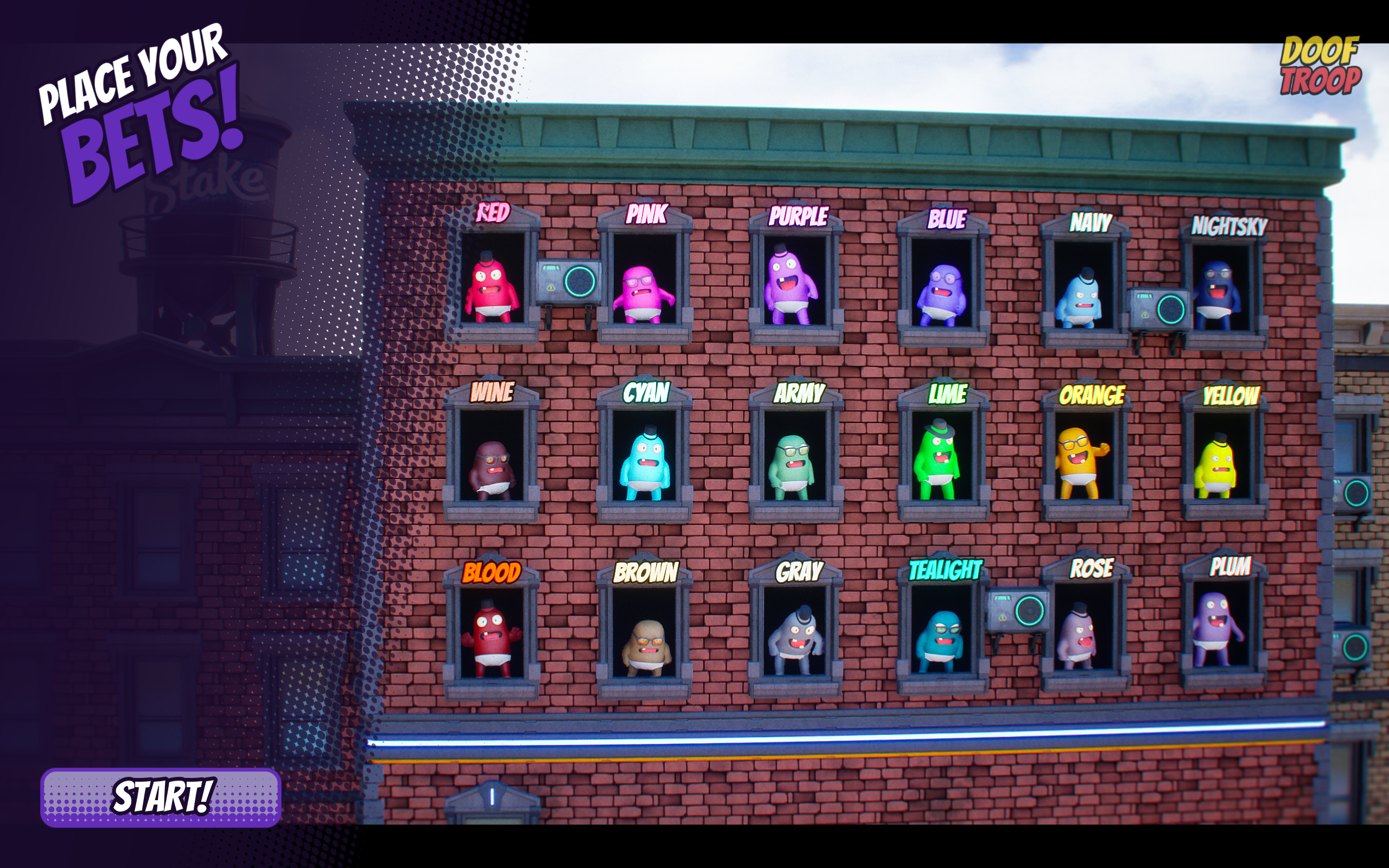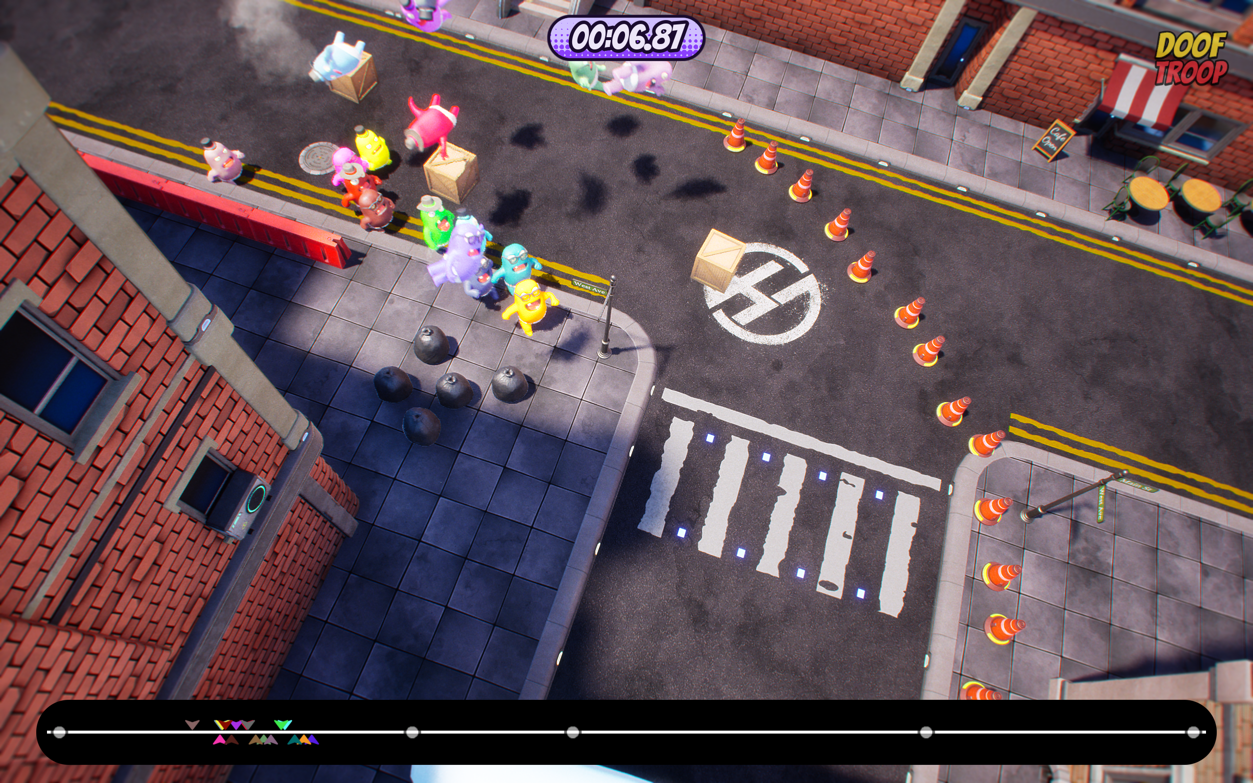 Doof Troop is a chaotic and fast-paced, physics-driven racing game, with memorable characters racing through obstacle-filled courses. With many tracks and dynamic elements, each race is totally unique and unpredictable.